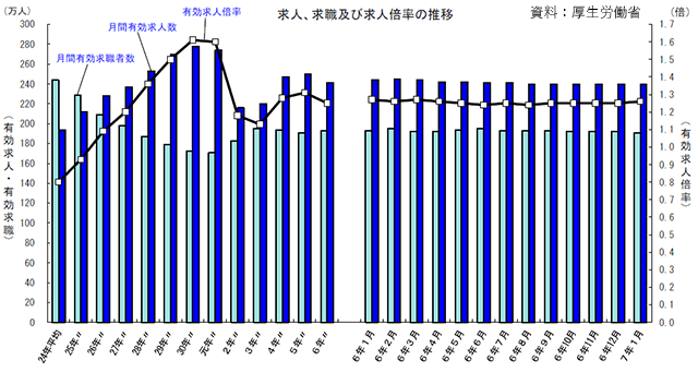 全産業の求人、求職・求人倍率の推移(資料より引用)