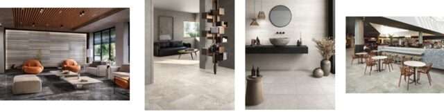 トラバーチンをモチーフとし、脈模様のベインカットと、それを横断するようにカットしたクロスカットの2種類。2色。1197×597mm、597×597mm。1万2540円/平米(税込)