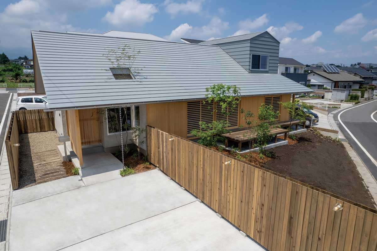 雰囲気の似た戸建てが並ぶ分譲エリアで、ウッドフェンスが周囲からの視線をうまく遮り、プライバシーもさりげなく確保。室内空間ものびやかでディテールも細やかに仕上げられた。