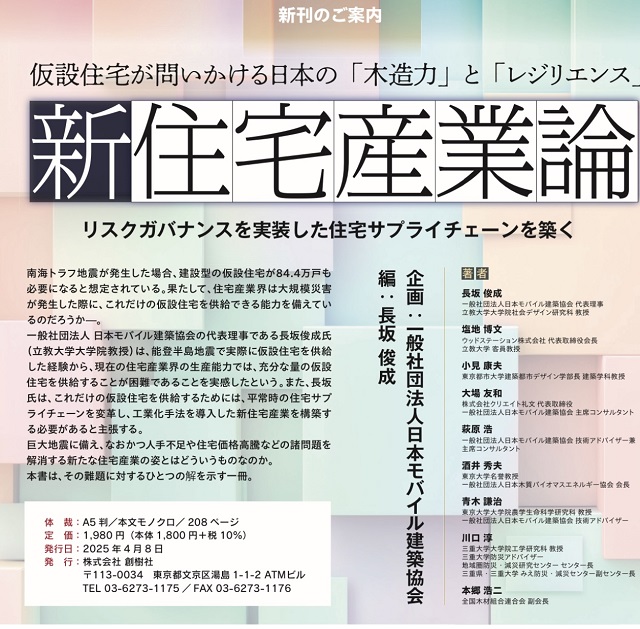 4月22日には、立教大学池袋キャンパス マキムホールにて「キックオフミーティング」を開催。同協会が企画した「新住宅産業論」(研究代表長坂俊成編著)をテーマにプロジェクト関係者と討論する。
