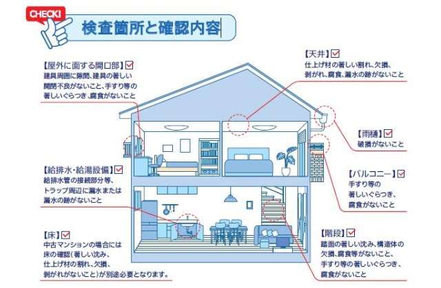 新制度適用にあたっては、【フラット35】の技術基準に加え、「屋外に面する開口部」「給排水・給湯設備」「床」「天井」「雨樋」「バルコニー」「階段」において、不良や欠損がないなど、すべての技術基準に適合する必要がある。原則として、検査機関または適合証明技術者が、劣化等を目視で確認する。