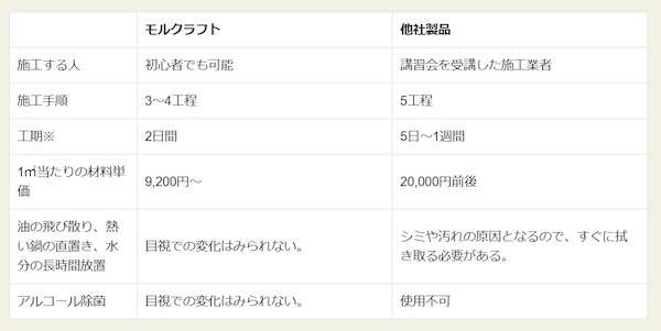 防水・耐久性に優れ、キッチンカウンターや洗面台、シャワーブース、屋外の床・壁などに施工することができる。