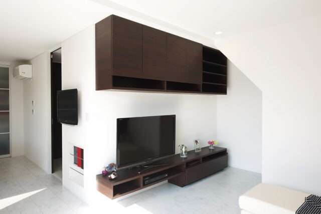 間取りの特長の一例 上:親が見守りつつ集中できる勉強スペース 下:テレビ裏の大容量収納