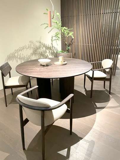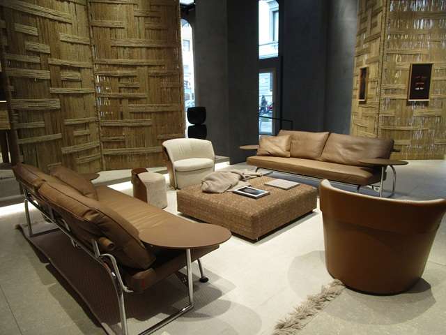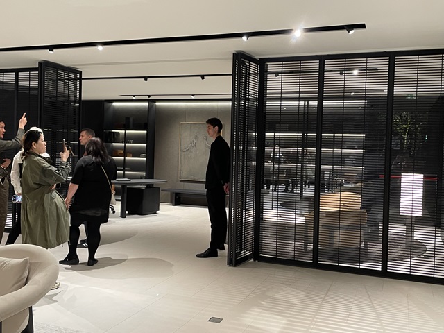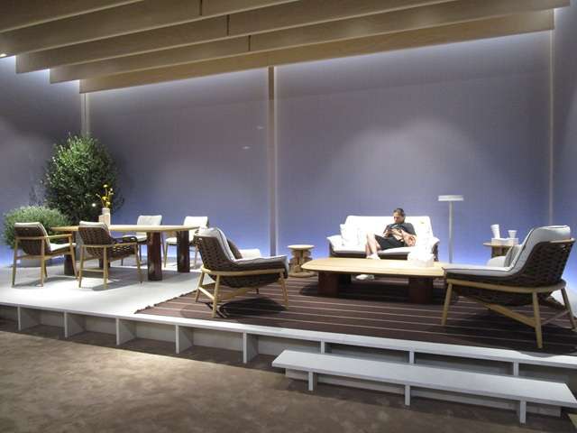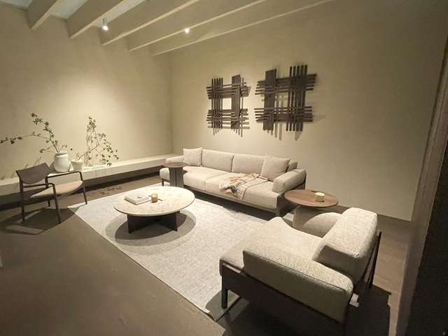 《A way of living》をキャッチフレーズにシンプルでナチュラルなコンテンポラリーデザインの家具がゆったりと展示されている。スペースを区切るピボットヒンジの大形ガラスドアの斬新で美しいデザインとスムーズな動きが印象的だった