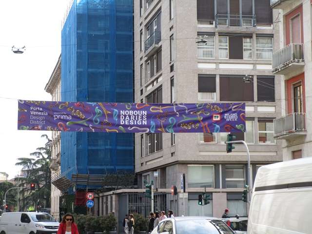 Corso Monforteの通りにPorta Venezia Design Districtの横断幕を発見