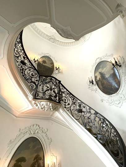 ドゥリーニ通りの中ほどに位置する18世紀のParazzo Durini内のSR。バロックやロココの装飾の中にモダンなエドラの家具がしっくりと納まりミラノのラグジュアリの一つの形を感じとることができます