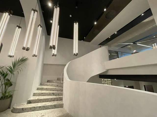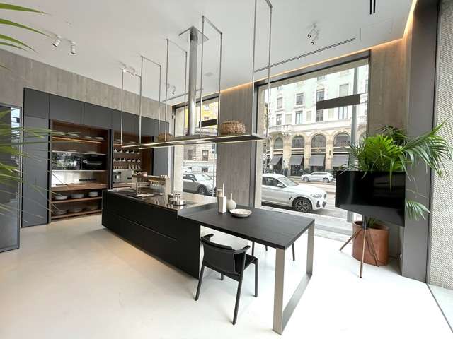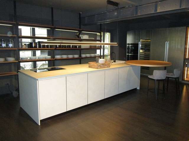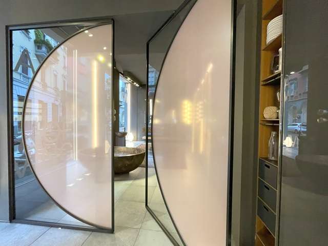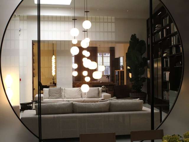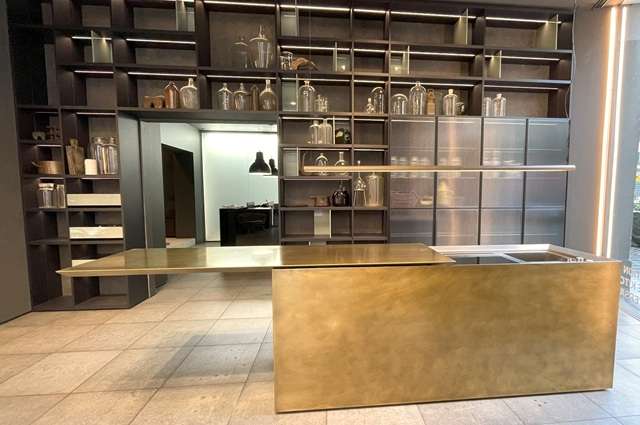 照明デザインで知られていたメーカー。数年前スピーガ通りに移転した。細長い小路の奥にある威風堂々としたSR、巨大な石の塊のキッチンに圧倒されます
