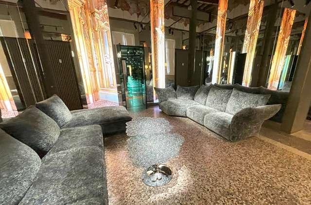 Palazzo Bovaraを舞台にしたPatricia Urquiora による《Alchemist (錬金術師)》と題したインスタレーション。日常と非日常が交錯するエモーショナルな空間。壁面のアートワークには京セラが開発したインクジェットプリンターが使われている