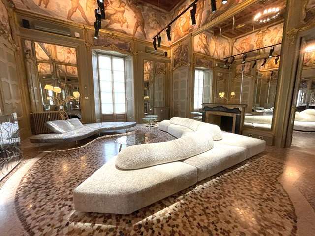 Palazzo Castiglioniではスペイン風のインテリアで表現したアパートメントのインスタレーション。アールヌーボーとコンテンポラリーデザインが一つに調和する空間を創り出した