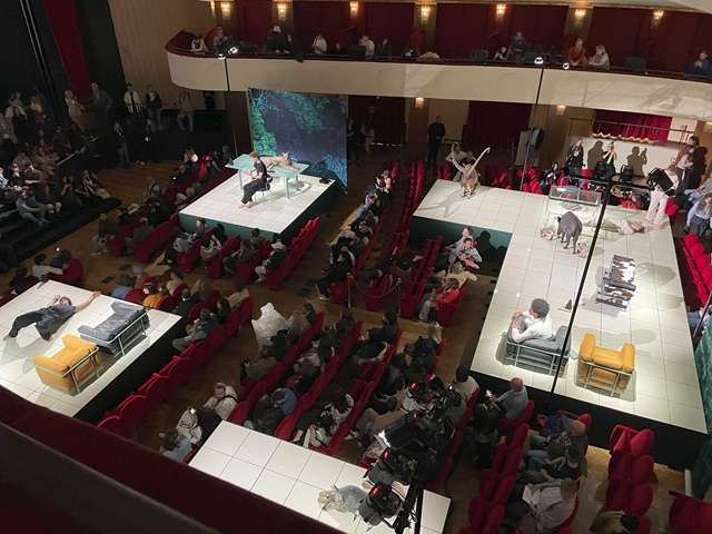 カッシーナはル・コルビュジエ®、ピエール・ジャンヌレ®、シャルロット・ペリアン®・コレクションの60周年を記念したインスタレ―ションと演劇《Staging Modernity》を上演した。会場は200年前に建てられ1998年に閉鎖、2007年から大規模改修がなされた由緒ある劇場テアトル・リリコ・ジョルジョ・ガーバー