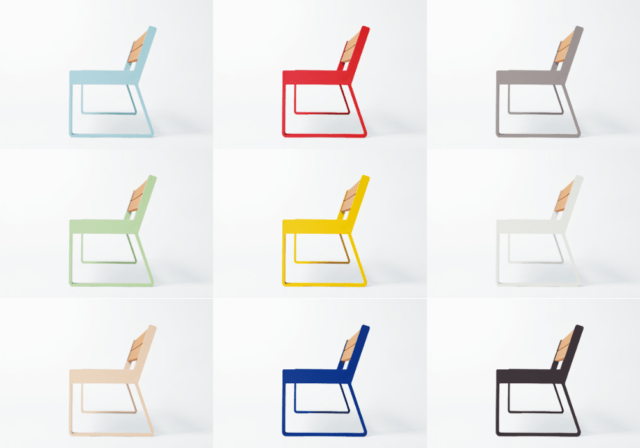 公共空間に必要なベンチ、テーブル、ごみ箱など5種のアイテムをラインアップ。3色の再生木材と9色のアルミニウム製フレームを自由に組み合わせることで、豊富なカラーバリエーションを用意した。