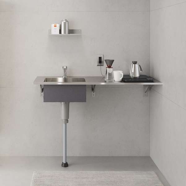 ミラタップ(大阪市)は、洗面台としてもコンパクトキッチンとしても使えるステンレス製のカウンターシンク「インダスターカウンター」を発売した。