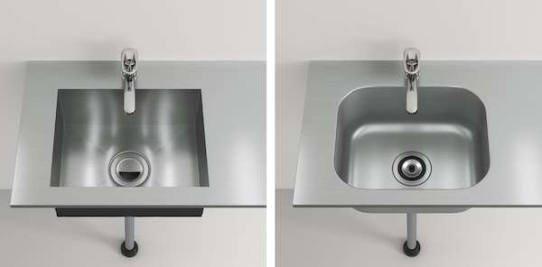 シンクは手仕事で溶接する「角シンク」と丸みのある「プレスシンク」の2種類。