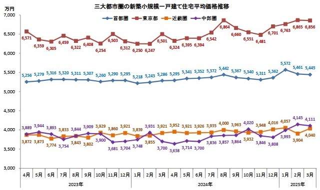 3月の新築一戸建て、首都圏は上昇に転じるも23区は連続下落