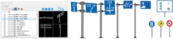 さらに、標準断面、土木セル、排水集水桝、道路標識のテンプレートを大幅拡充。標準断面は33種、土木セルは9種、排水集水桝は約250種、道路標識は約100種揃えた。