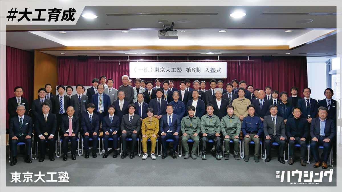 社員大工の育成に取り組む工務店などで構成される東京大工塾(理事長=佐藤義明・ハウステックス社長)は4月4日、第9期の入塾式を開催した。第9期の入塾生は3社4人で、会員工務店の社員として働きながら訓練校に通学して技能を磨き、2年かけて一人前の大工を目指す。また、工務店8社が新たに入会した。