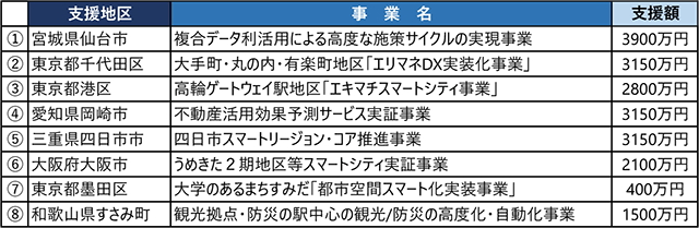 今回は、東京都港区・高輪ゲートウェイ駅周辺エリアの「エキマチスマートシティ事業」、大阪府梅田駅前エリアの「うめきた2期地区スマートシティ実証事業」など、都市空間を高度化させる取組を選出。他に、災害への備えが求められる地域での防災に関する事業が選ばれた。