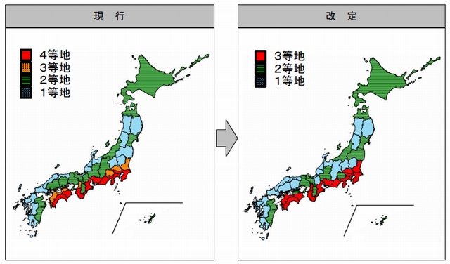 都道府県ごとの危険度区分は下図のように見直す。
