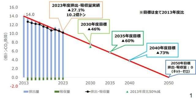 2023年度までの実績と2050年ネット・ゼロに向けた今後の目標値
