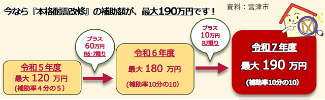 京都府宮津市は5月8日から、2025年度の木造住宅耐震化支援制度の申し込み受付を開始する。今年度は能登半島地震を踏まえ、耐震改修に係る補助率を最大で全額に、上限額を23年度実績の120万円から190万円に引き上げた。受付は先着順で、申請に必要な耐震診断も無料で行う。