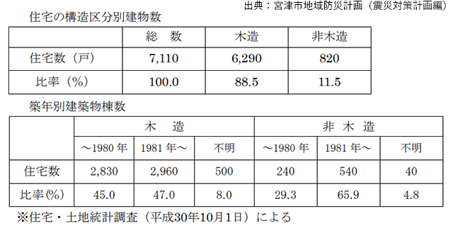 同市が2020年に策定した地域防災計画によると、市内の木造住宅の割合は全体の88.5%で、このうち1980年以前に建造された木造建物が全体の約45%を占めている。そこで同市では耐震相談窓口の設置や住宅耐震診断事業、耐震改修事業などにより、木造住宅の耐震改修を促進している。