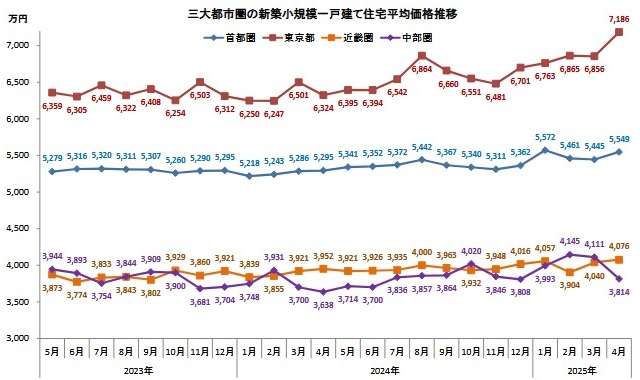 4月新築一戸建て、首都圏連続上昇 東京都が初の6000万円台に