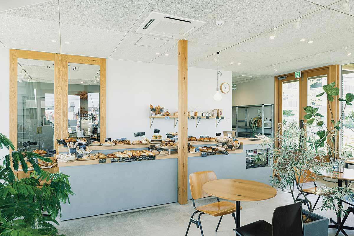 そんな彼らは顧客が気軽に訪ねられる場所として、モデルハウスの隣にパン屋兼オフィスを建設。1階がパン屋「ONION’S bakery」で2階がオフィス。2020年に開業。パンは日常的に口にするものなので気軽に立ち寄れる。顧客とコミュニケーションの機会を持ちやすいと判断した