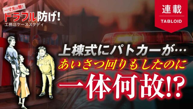 建て主の要望で日曜日に設定した上棟の日。一同は気合を入れて施工に取り組んでいた。その矢先、周囲に響き渡るパトカーのサイレン。何事かと驚く工務店の社長・Bさん。なんと近隣から「騒がしい」と通報があったのだという。以降はしずしずと作業を進め、現場はすっかり意気消沈…。【住宅ライター:渡辺圭彦】