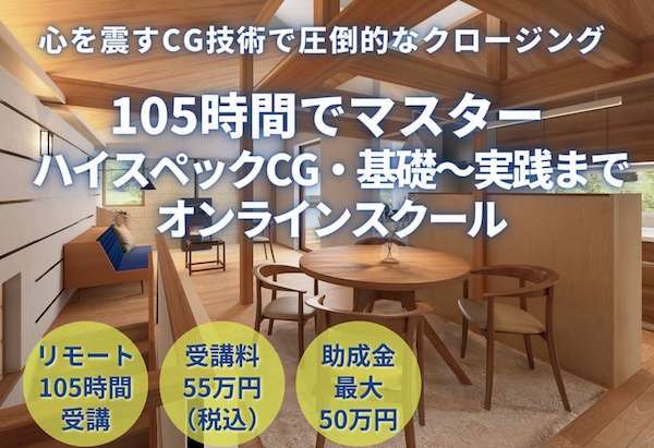 ハイスペックCGオンラインコースの詳細はこちら。