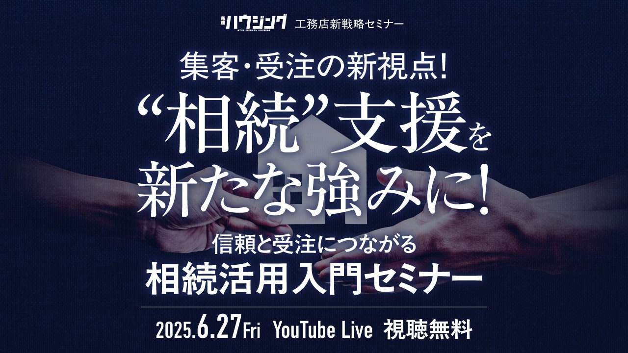 相続の悩みに寄り添い信頼関係を深めることで、住まいや土地活用などの相談へと発展させていく。具体的な事例を交え、工務店だからこそ実現できる相続支援のあり方や、その延長線上にある受注の可能性を見出します。