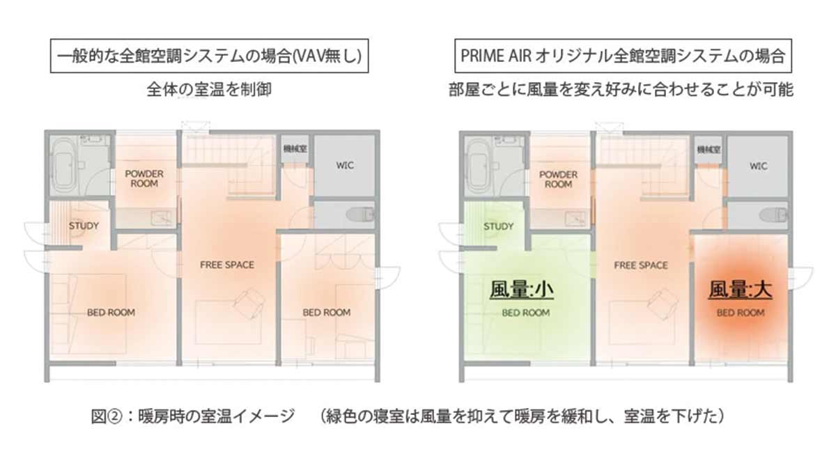 従来の同社製全館空調システムに比べ、初期費用(設備費、工事費)を2割程度抑えられ、光熱費も一般的な全館空調システムと比較して約4割削減できるとしている。