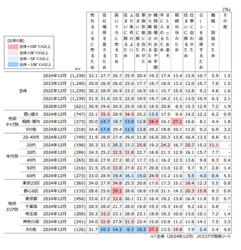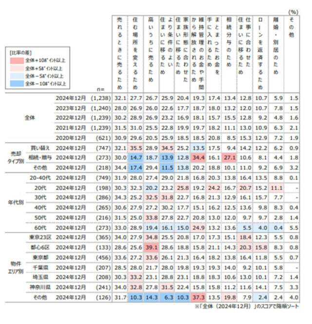 同調査は、過去1年以内に土地、居住用不動産の売却を検討し、情報収集や査定、媒介契約などの行動を取った首都圏在住者を対象に、24年12月23~25日にかけて実施した。有効回答数は1238人。