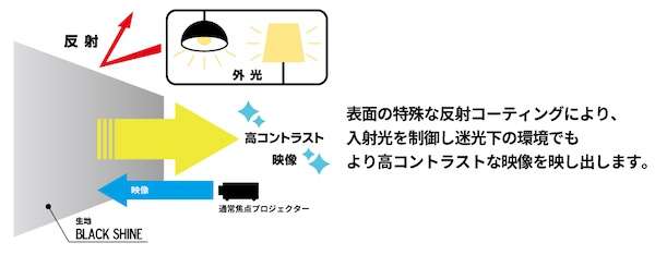 表面に特殊な反射コーティングをほどこして入射光を制御することで、迷光下の環境でもコントラストの高い映像を再現。これにより、プロジェクターを使用する際に室内を暗くする必要がない。