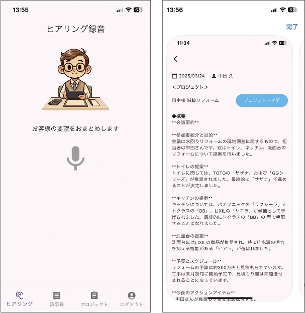 同アプリを開発した社長の中田寿さんは、「設計打ち合わせや現場会議の議事録作成は手作業に依存しており、それによる抜けや漏れ、“言った、言わない”のトラブルなどが大きなクレームとなり、損失につながることも少なくない。これを防げていないのが現場の実情」と話す。