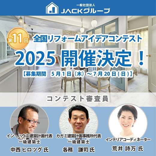 リフォーム事業者の経営支援を行うJackグループ(岐阜県高山市)は、リフォーム業界の活性化と人材育成を目的とした「第11回全国リフォームアイデアコンテスト」を開催する。このほど、作品応募を開始した。全面改装部門と部位別部門の2部門で受け付ける。応募締め切りは7月20日まで。