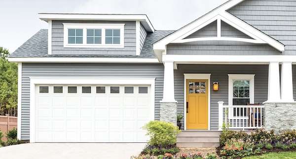 外壁ラップサイディング、オーバーヘッドガレージ、電動オープナー