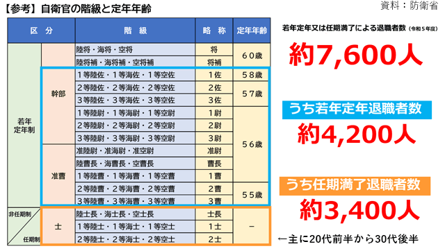 退職予定自衛官の年齢(防衛省資料に一部追記)