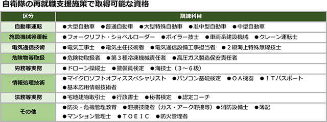 このうち建設業については、自衛隊に基地や陣地の建設・維持・整備に関わる部隊が存在し、建設関係の資格や免許を取得している人もあることから、即戦力としての活用を期待している。