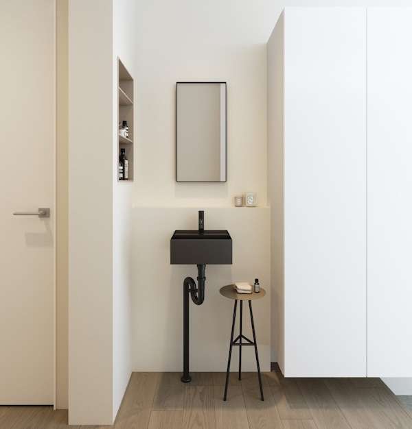 幅・奥行ともに300mmで、高さは手がしっかり洗えて水はねもしにくい120mmとした。 ホワイトとブラックの2色。 3万9800円/台(税込)。