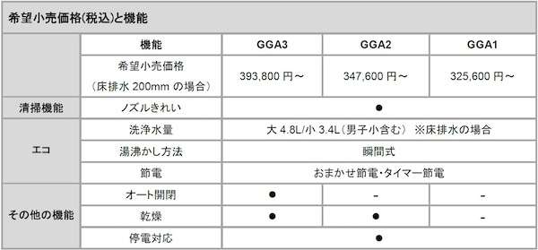 TOTO(福岡県北九州市)は、ウォシュレット一体形便器「GGA」を8月1日に発売する。