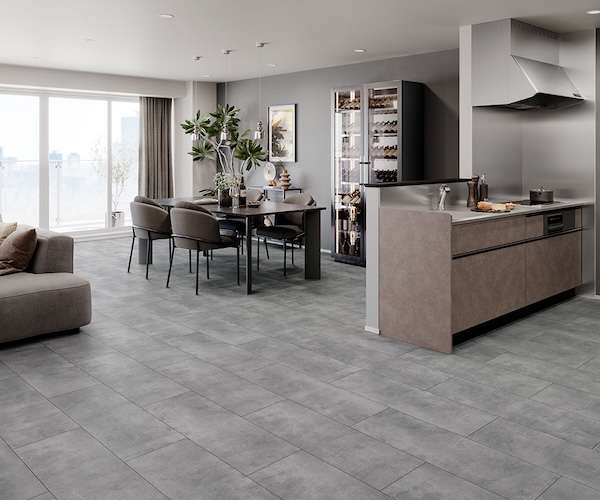 2023年11月発売のフローリング「コンカーボ」と同じ化粧シートを使用し、直貼り遮音タイプとしては画期的な約300mmのワイド幅を実現。