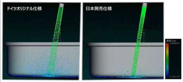 日本国内のユーザーの声に応え、ドイツオリジナル品の散水板に改良を加えることで、水はねの少ない「ソフトスプレー仕様」を採用。