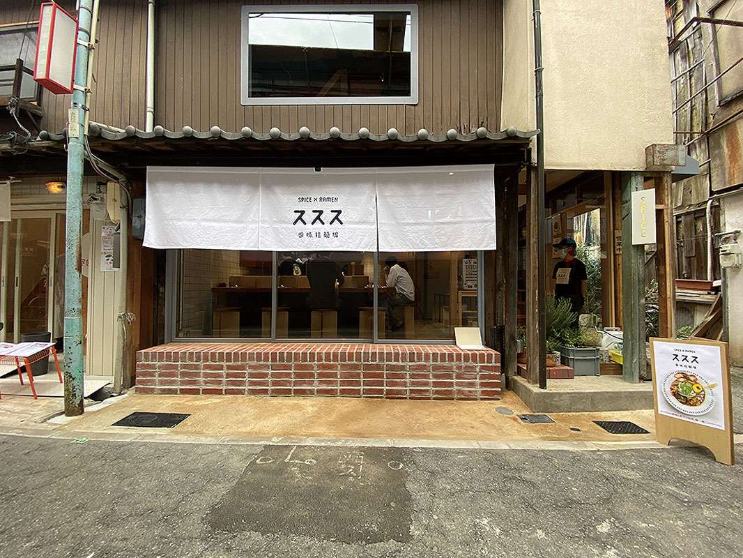 2019年のコロナ禍で社員の昼食として、同社役員で工務担当の高岡深造氏がラーメンを料理。それが美味しかったため、ラーメン屋開店を前提に試作に入る。同時にマーケティング専門家に教わり、顧客の設定や立地、メニュー、SNS戦略などについて検討。紆余曲折あり、3年後にスパイスカレーをラーメンに応用した「スパイスラーメン」が完成。2022年9月に「ススス」を開業。