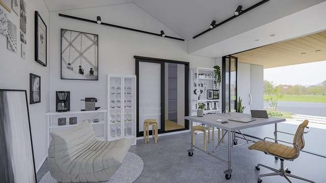 第2弾商品の「YUIE ATELIER」は、需要が増しているコンパクトな平屋をベースに、普段の生活とアトリエ(趣味や仕事の専用空間)をシームレスにつなげた住まい。暮らし×アトリエをコンセプトに掲げ、「自分の時間」を趣味に使う人や、時間・場所にとらわれない働き方を望む30代女性(DINKS含む)をターゲットに、生活と利便性を採り入れたモデルプランとなっている。