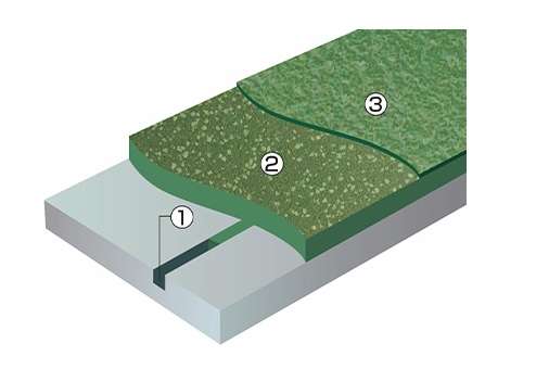 ①欠込目地(10×10mm) ②下塗 ③上塗+表面調整