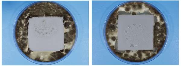 「JIS Z 2911 カビ抵抗性試験 プラスチック製品方法 B」という極めて厳しい評価基準に基づく試験を行ったところ、カビの繁殖抑制が確認されたとする。