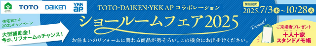TOTO(福岡県北九州市)、大建工業(大阪市)、YKK AP(東京都千代田区)の3社は、全国のTDYコラボレーションショールームにて、7月3日から「TDYコラボレーションショールームフェア2025」を順次開催する。