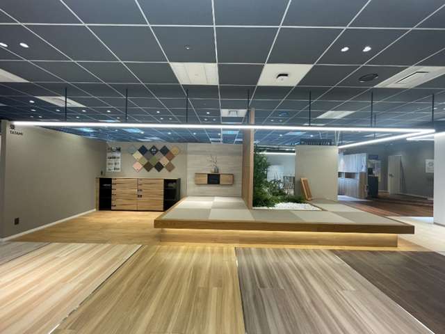 畳や収納、格子間仕切り、不燃化粧壁材など、同社の製品を組み合わせた待合いコーナーも新設した