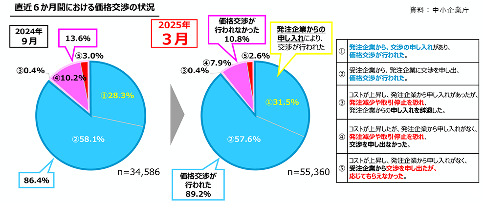 同調査は、毎年3月と9月の「価格交渉促進月間」に実施するアンケート調査結果と、約2000社を対象とした下請Gメンによるヒアリング結果をまとめたもの。調査期間は25年4月21日から5月30日。回答企業数は6万5725社。