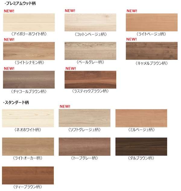 また、戸建て用のペット仕様床材「ワンラブフロアV」にトレンドを反映した「プレミアムウッド柄」7種を、「スタンダード柄」1種を追加し、全15柄から選べるようになった。